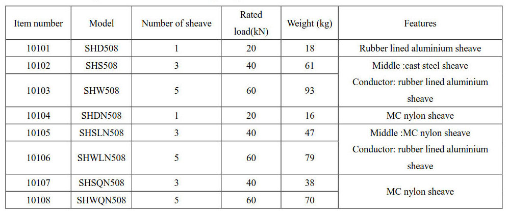 Block dimension ( outside diameter× root diameter × sheave width) Φ508×Φ408×75 (mm)